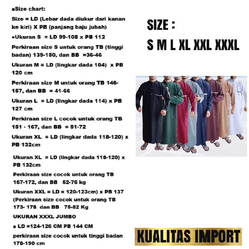Saiz dari s, m ,l,xl,xxl,xxxl,xxxxl,xxxxxl (saiz 36 ke 60) (rujuk ukuran kat bawah).